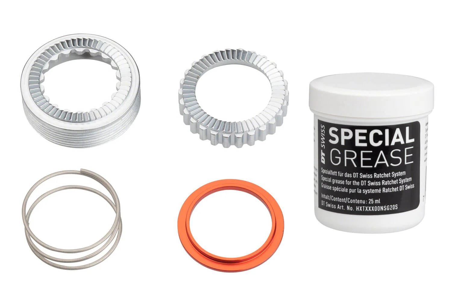 Scope of delivery: 2x tooth lock washer, 1x spring, 1x spacer, 1x special grease for freewheeling