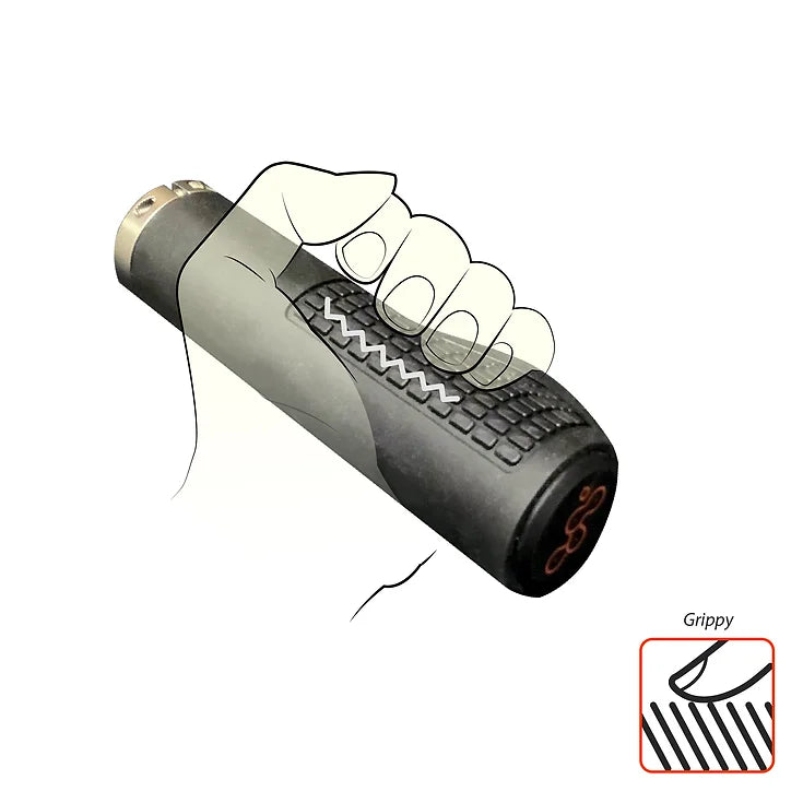 Special design includes a soft and texturized area that minimize the contact zone reducing the pressure in your plam and eliminating the feeling of numbness in your hands and fingers. Ideal for long rides.