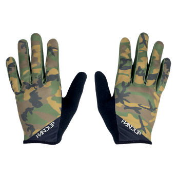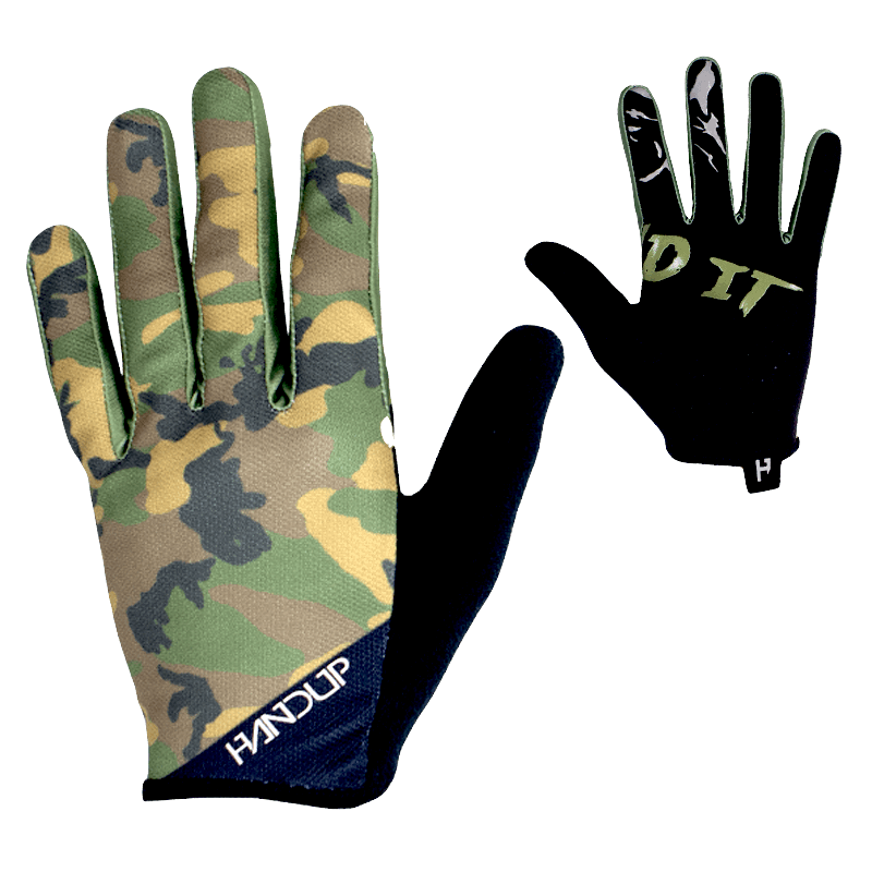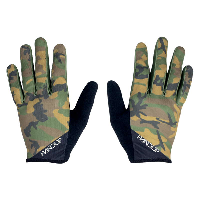 The Handup gloves has seen MANY iterations of camo but, never an absolute classic. These woodland camo gloves are as camo as camo gets. Your hands will disappear on your handlebar as fast as they would in the camo section of an army surplus store.
