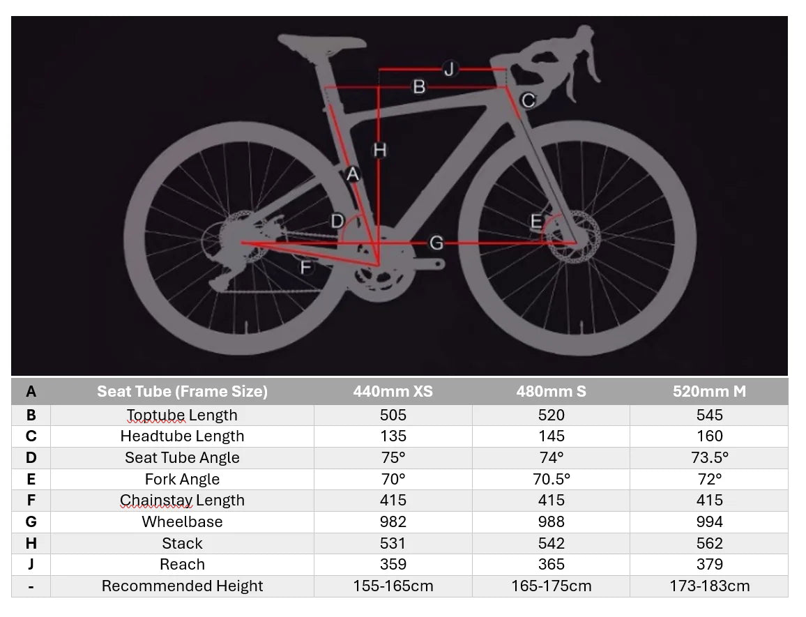 44cm XS: 155 - 165cm