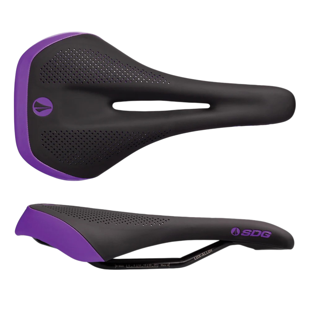 15+ years of proven comfort + performance, re-designed. The longstanding Allure (a global favorite for our female cyclists) has been refined for 2023, blending the perfect balance between comfort and style. The full channel Cut-Out and Peri-Canal is now more defined with additional pressure relief to ensure all-day enjoyment. The comfort is further enhanced with a new light-weight EVA foam, which is plush and rides comfortably – regardless of how long you’re in the saddle. The flatter nose platform aids with climbs and the squared off tail help modernize the aesthetics. And to top off the re-design, the Allure V2 now features a sportier cover constructed with a soft microfiber top and perforated color underlays, along with a seamlessly stitched color matched back panel - delivering unmistakable SDG DNA style to complement any build.