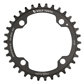 104 BCD is the most common bolt pattern on double and triple cranksets and happens to be the first product ever made by Wolf Tooth Components. This chainring started it all for us. The Drop-Stop® tooth design is the best performing and longest lasting wide/narrow chainrings on the market.