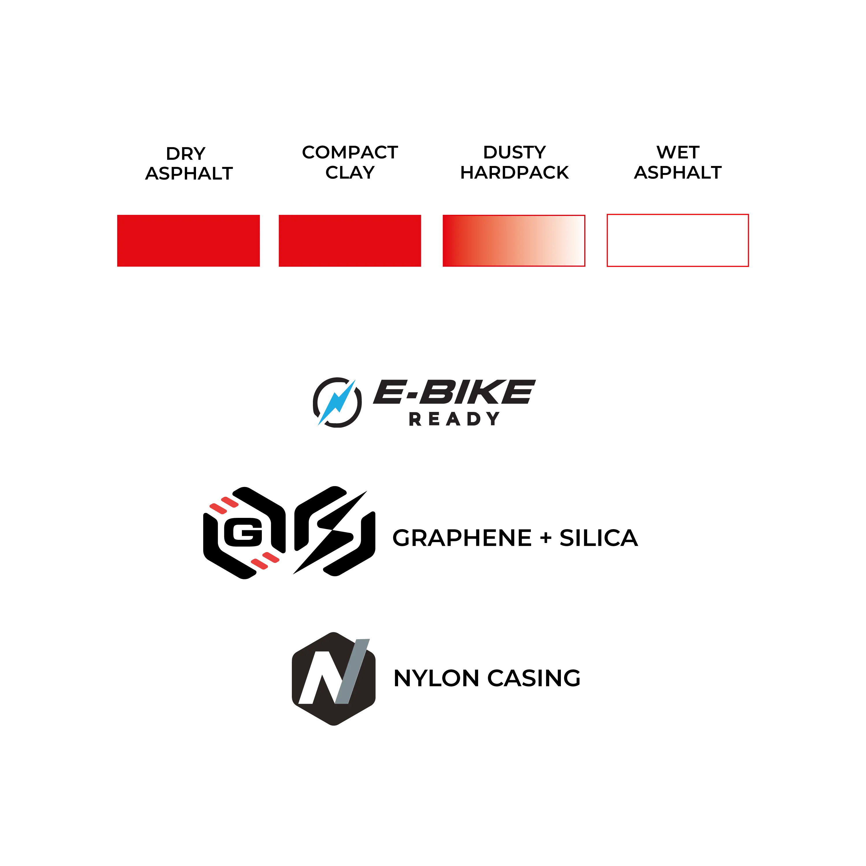 Veloce is the top choice when rolling performance matters most. The slick center transitions smoothly into an array of progressive width sipes for confident cornering control. The tread is made with our Race Formulation powered by Graphene + Silica, providing speed and grip without compromise. Veloce provides a supple feel and a dependable nylon casing.